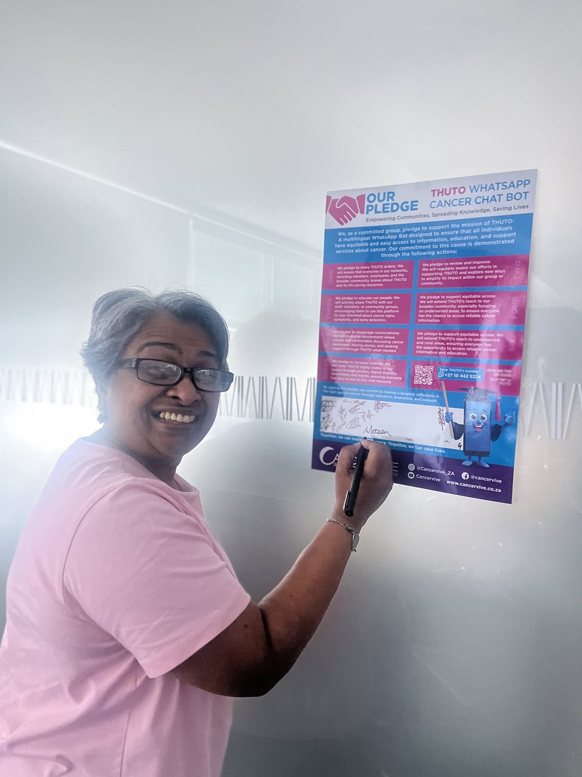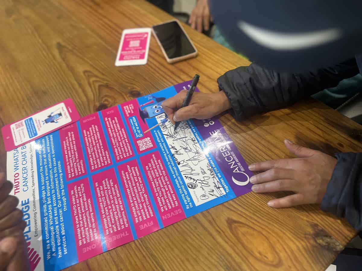 Cancervive is proud to announce the launch of our new initiative, Pledge with Purpose. The goal is to educate and empower community leaders to take THUTO, Cancervive’s groundbreaking Cancer Chatbot, back to their communities. Through this, we aim to spread the crucial message that Early Detection CAN Save Lives.